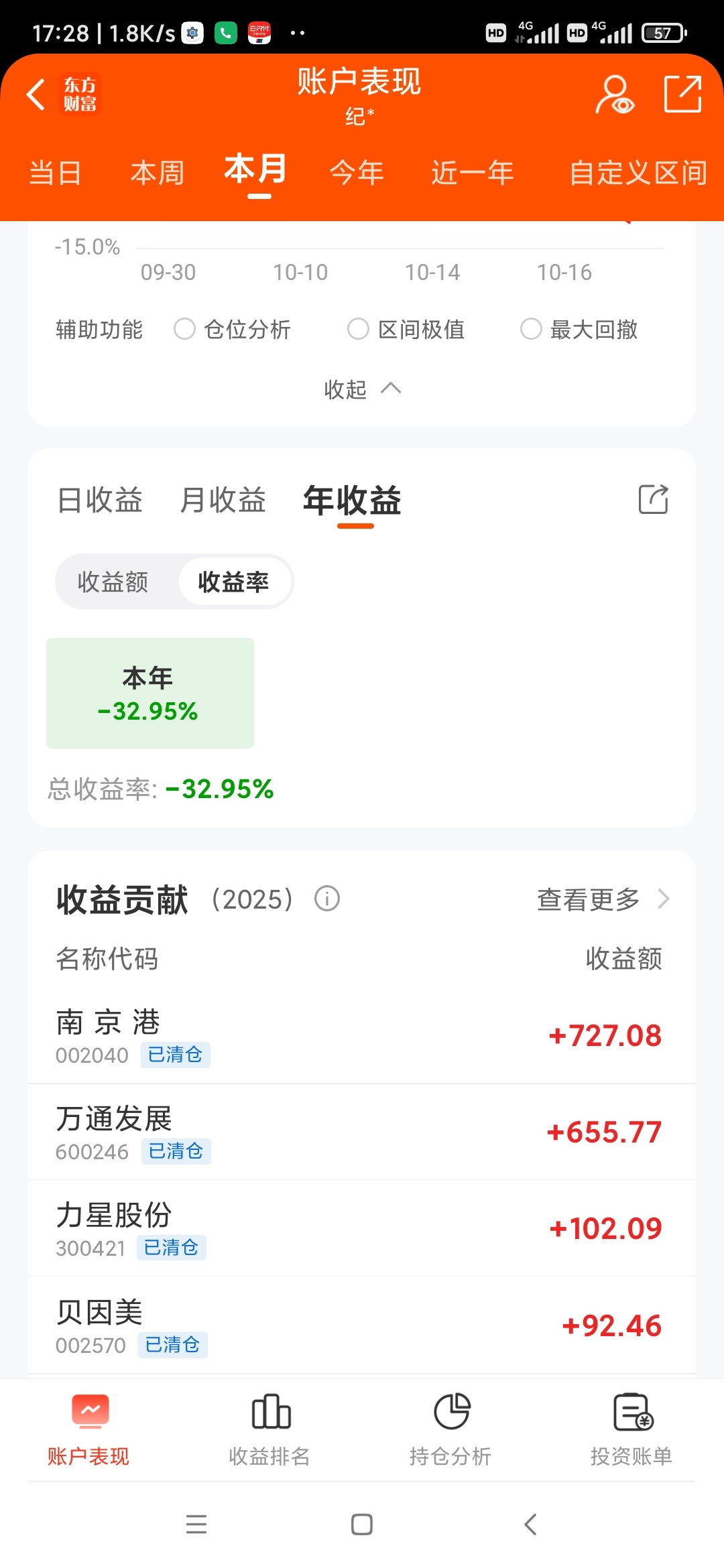 )郁闷,这是一个账户今年的收益,另一个账户也是20%的亏损,不舍得抽不舍得喝,都