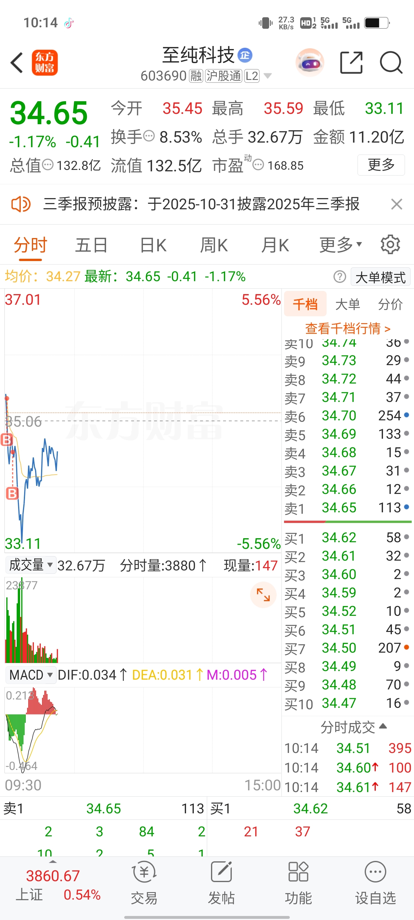 $至纯科技(SH603690)$ 大盘那么好,你上来就套嫩爹