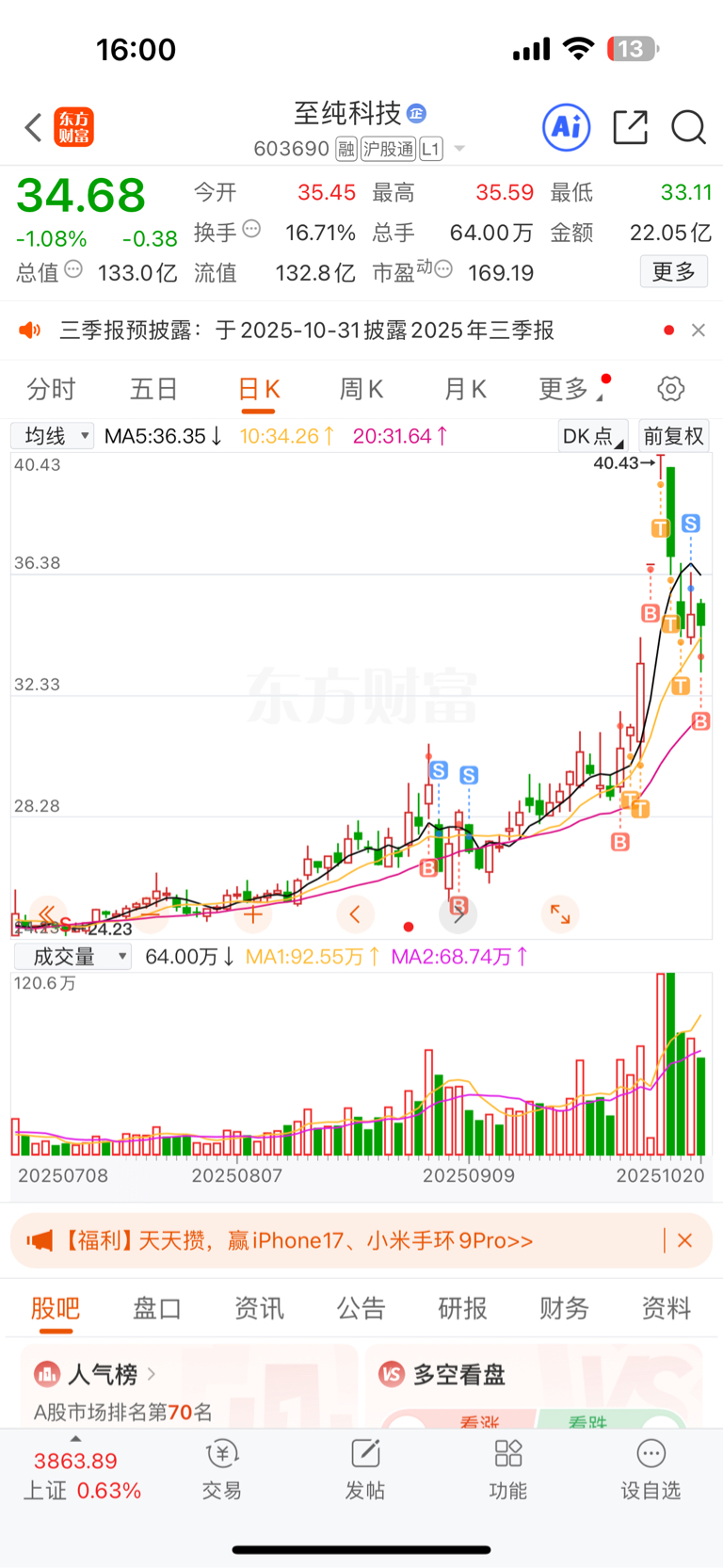 $至纯科技(SH603690)$ 周五高点走了 今天继续低吸 感觉还是有资金在维护 看看到底怎么个事