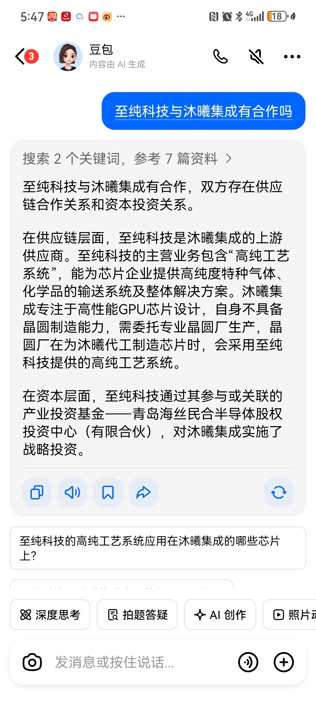 $至纯科技(SH603690)$ 跟沐曦集成有业务合作加股权合作