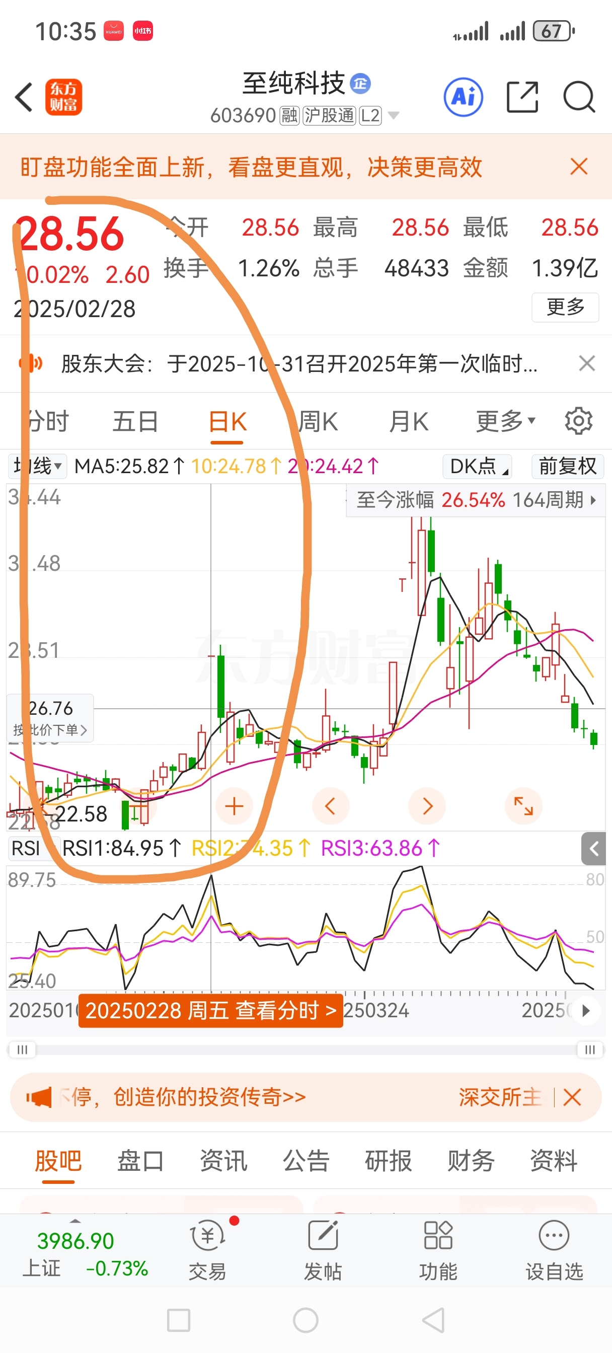 $至纯科技(SH603690)$ 看图说话,就2月28日收购公告就值一个涨停板,后面两天就还回去了,看来不是什么重大收购案,也不算什么好资产,终止收购够不成重大利空,关于业绩,三季度利润8000多万,虽同比下降,但在A股中算盈利能力不错的公司了,算不上重大利空,很多负盈利的公司股价还不断攀升,比如科大国创,三季度负一亿,这几天股价起飞。