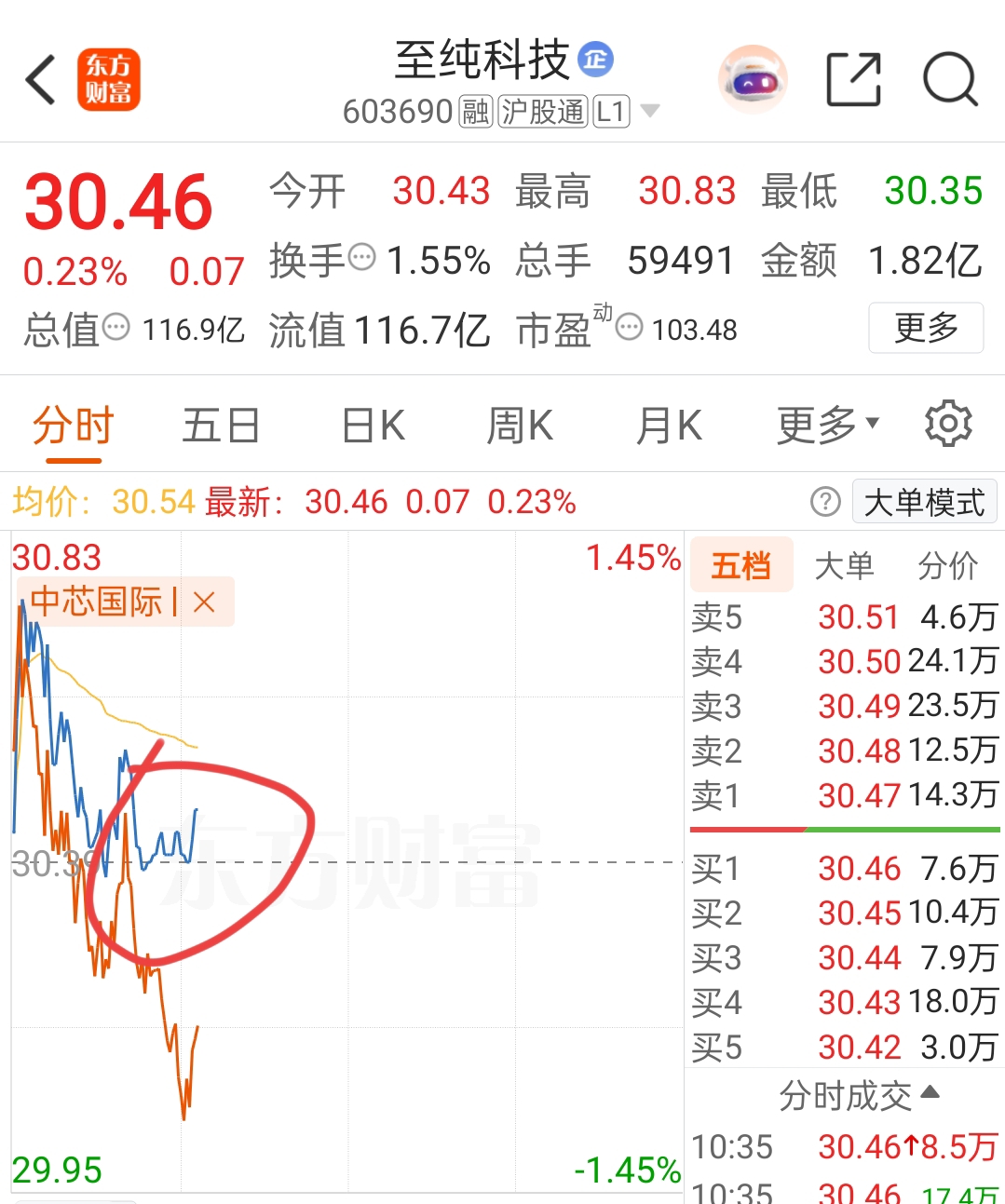 看到没有,至纯科技的主力看不下去了,终于跟涨不跟跌了。