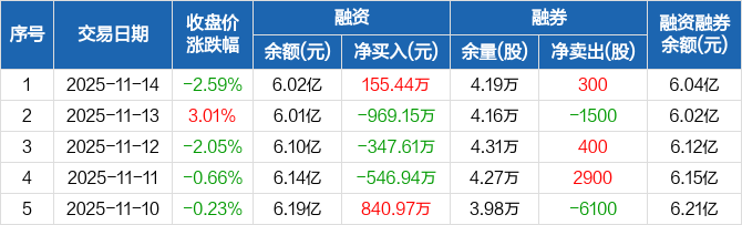至纯科技:融资净买入155.44万元,融资余额6.02亿元(11-14)