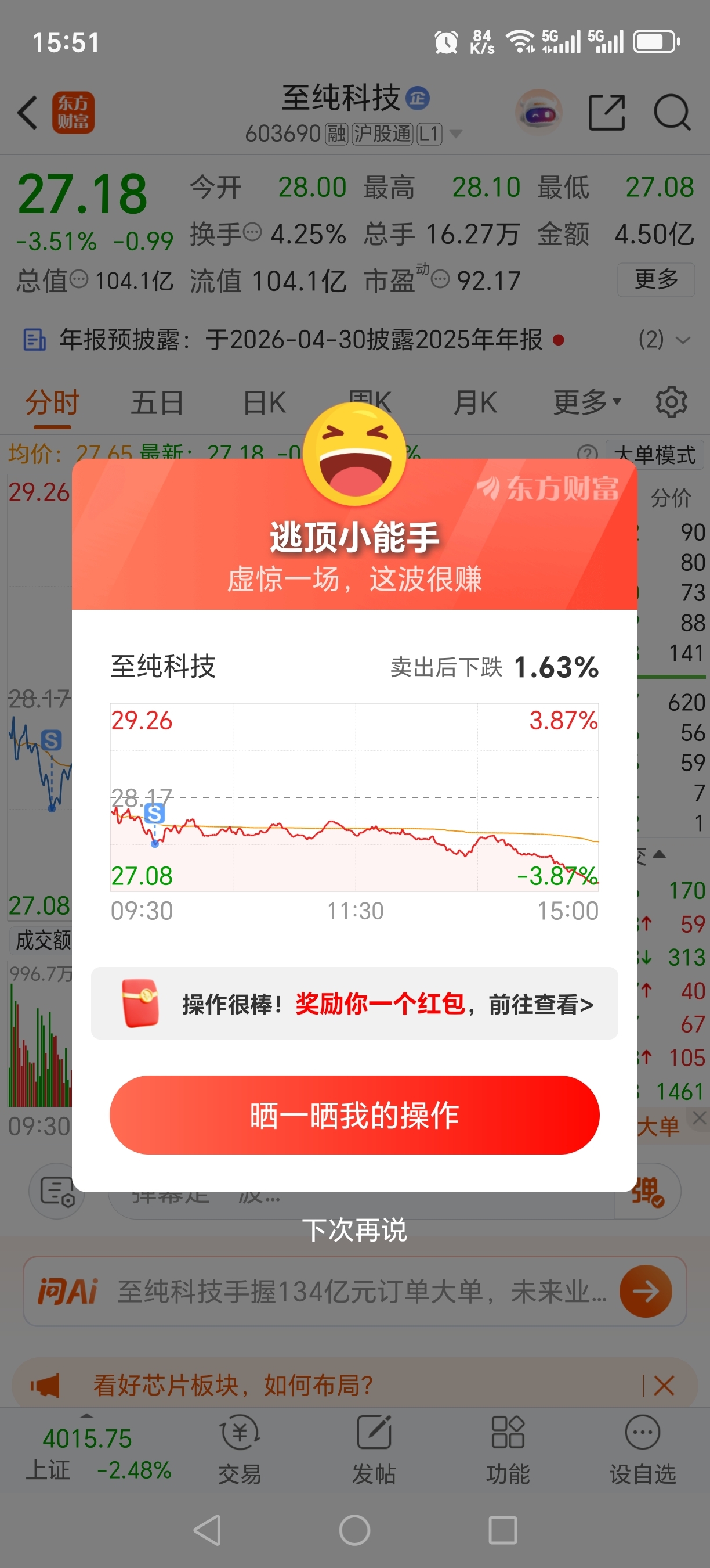 $至纯科技(SH603690)$ 亏20%,认割走了,阴跌无底