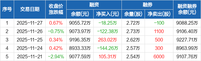 江苏新能:融资净偿还18.25万元,融资余额9055.72万元(11-27)