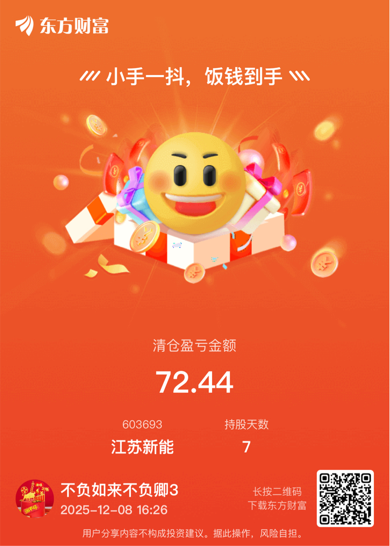 $江苏新能(SH603693)$ 炒股十多年以来,这是挣钱的股票里挣得最少的一个了!
