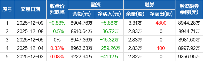 江苏新能:连续5日融资净偿还累计359.3万元(12-09)