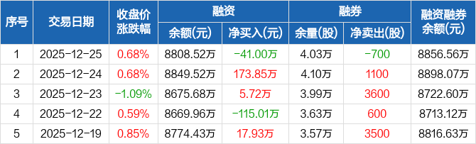 江苏新能:融资净偿还41万元,融资余额8808.52万元(12-25)