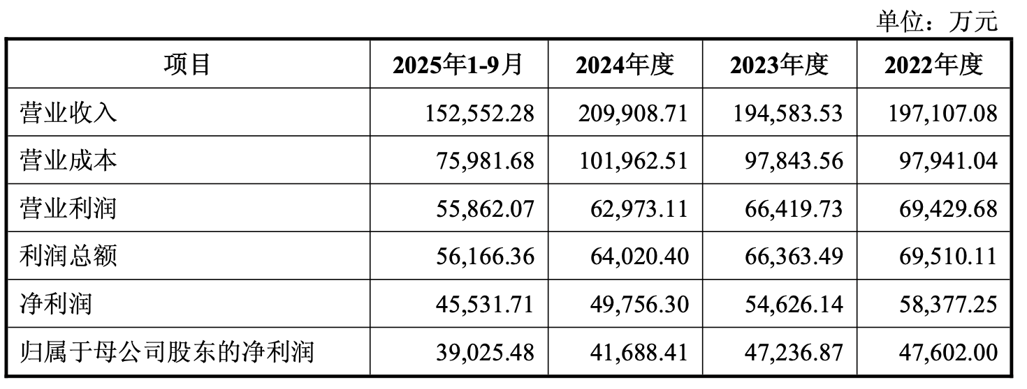 2025年前三季度,公司实现营业总收入15.26亿元,同比下降2.07%;归母净利润3.9亿元,同比下降7.93%;扣非净利润3.72亿元,同比下降2.93%。