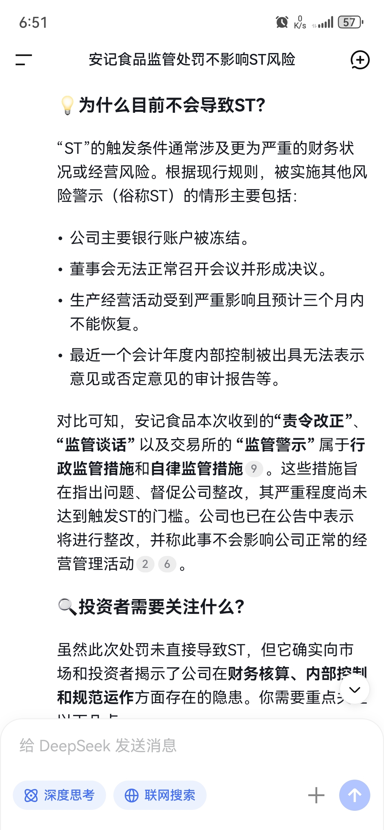 $安记食品(SH603696)$ 应该没有问题,不会ST,这波消费看你的了