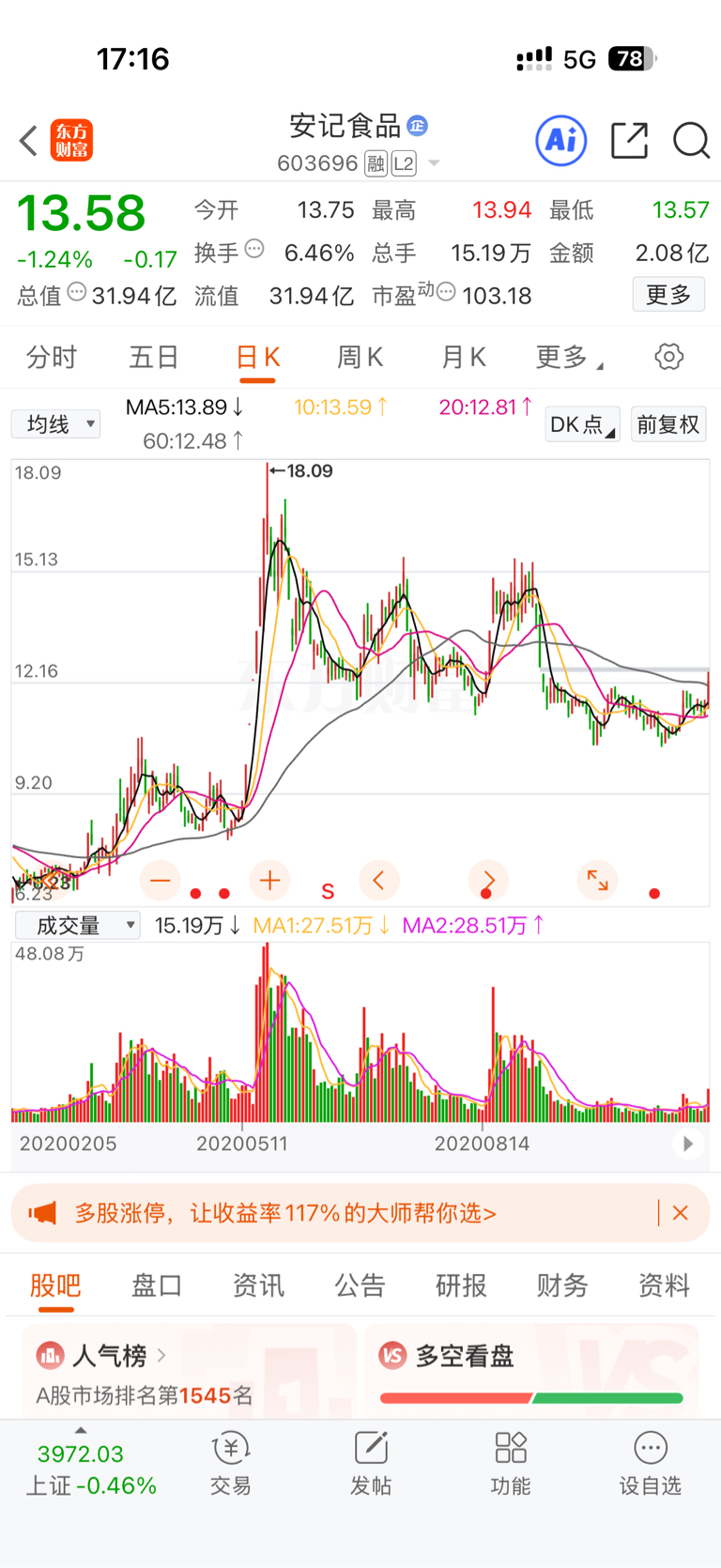 $安记食品(SH603696)$ 如有雷同,纯属活埋
