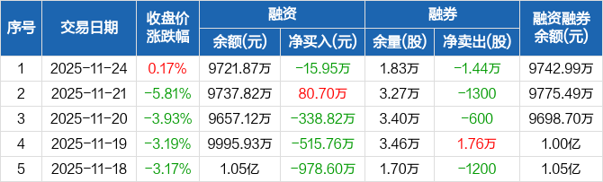 安记食品:融资净偿还15.95万元,融资余额9721.87万元(11-24)