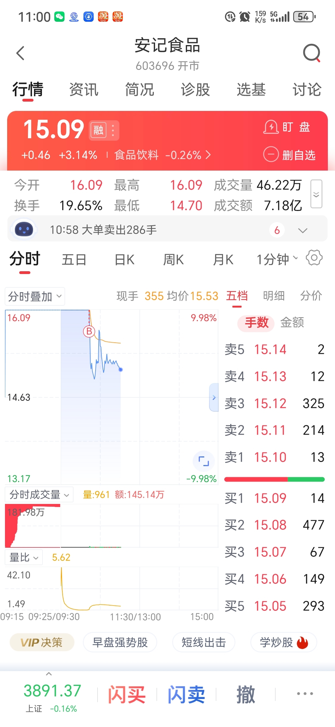$安记食品(SH603696)$ 完蛋了