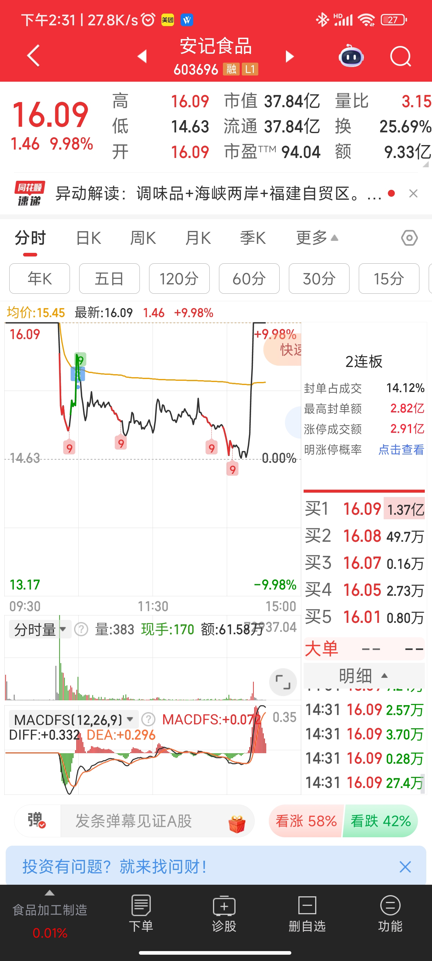 $安记食品(SH603696)$ 牛逼牛逼,又给我洗出来了