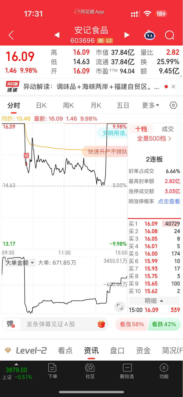 12月3日:买入安记食品操作记录请勿跟票,你的赢亏自己负责。