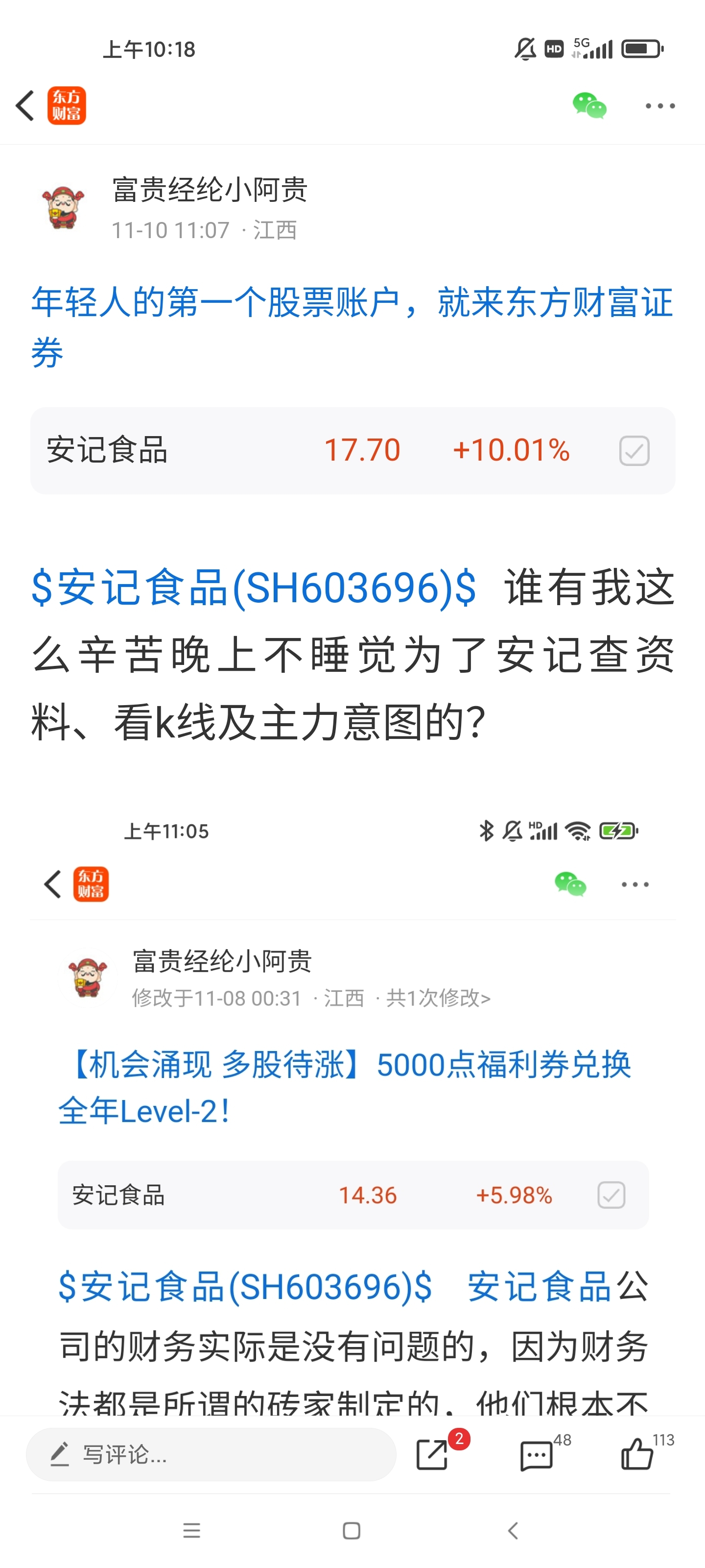 $安记食品(SH603696)$ 被海欣打乱了今年的大消费节奏,因为之前在茂业就没来安记,后面茂业断板想过来食品被海欣这个捣乱的搞得我不敢来安记了,为了安记我是多少个夜晚都没睡好觉,真的对不起我首板没接我上车,昨天下午有机会也是因为海欣的原因不敢上。我怕今天海欣断板会负反馈。