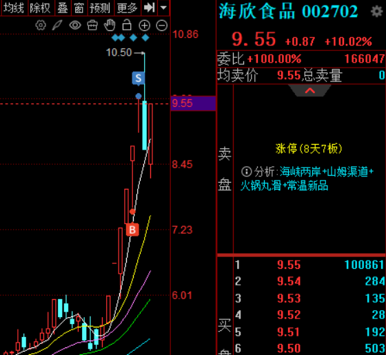涨停板敢死队:安记食品已成海峡两岸大消费龙头不用管海欣食品,因为鄙人就是从海欣食品高低切过来的。大家下周初坐稳直安记食品这架直升机就好!