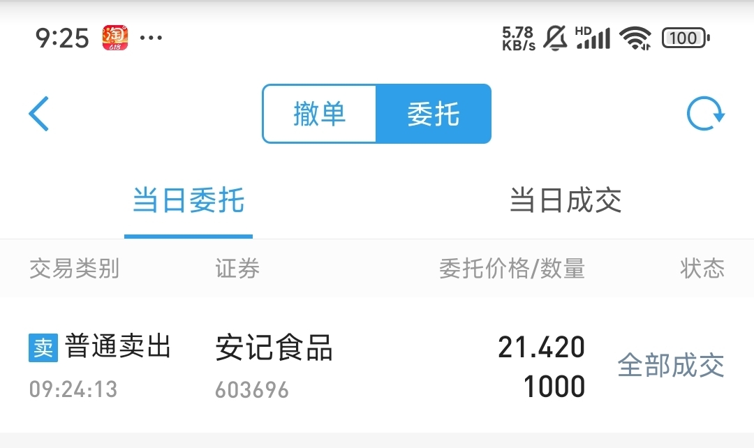 $安记食品(SH603696)$ 减仓1000股