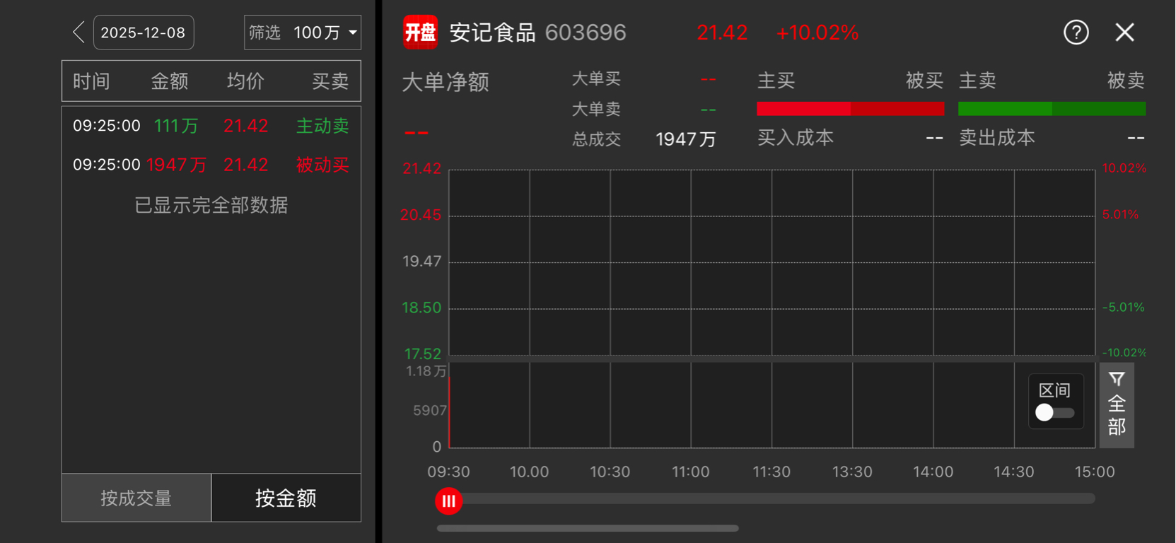 $安记食品(SH603696)$ 竞价全部被一个人一笔1900万大单吃完了X