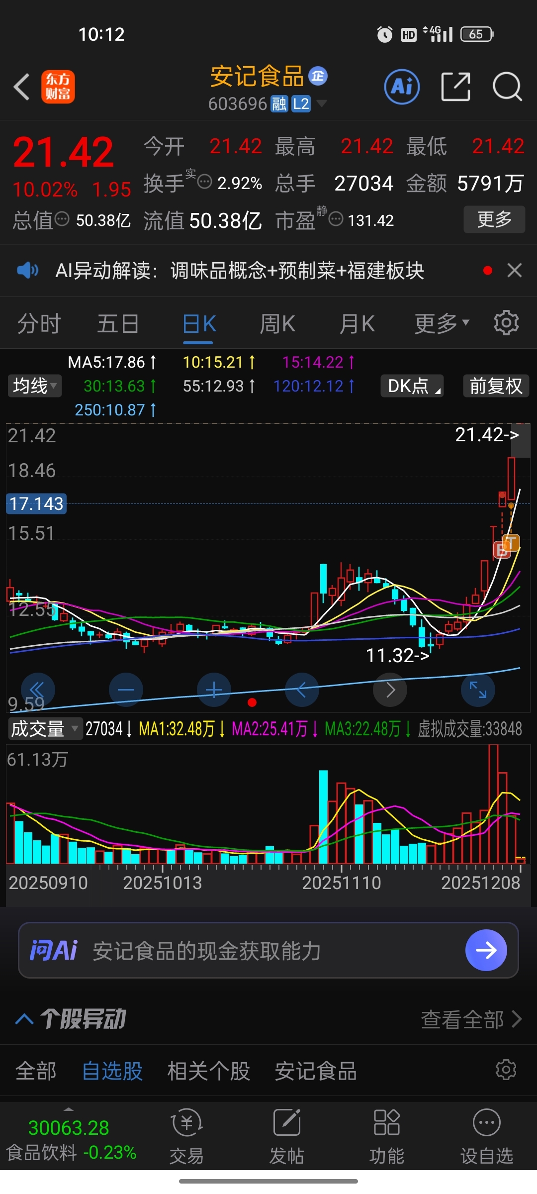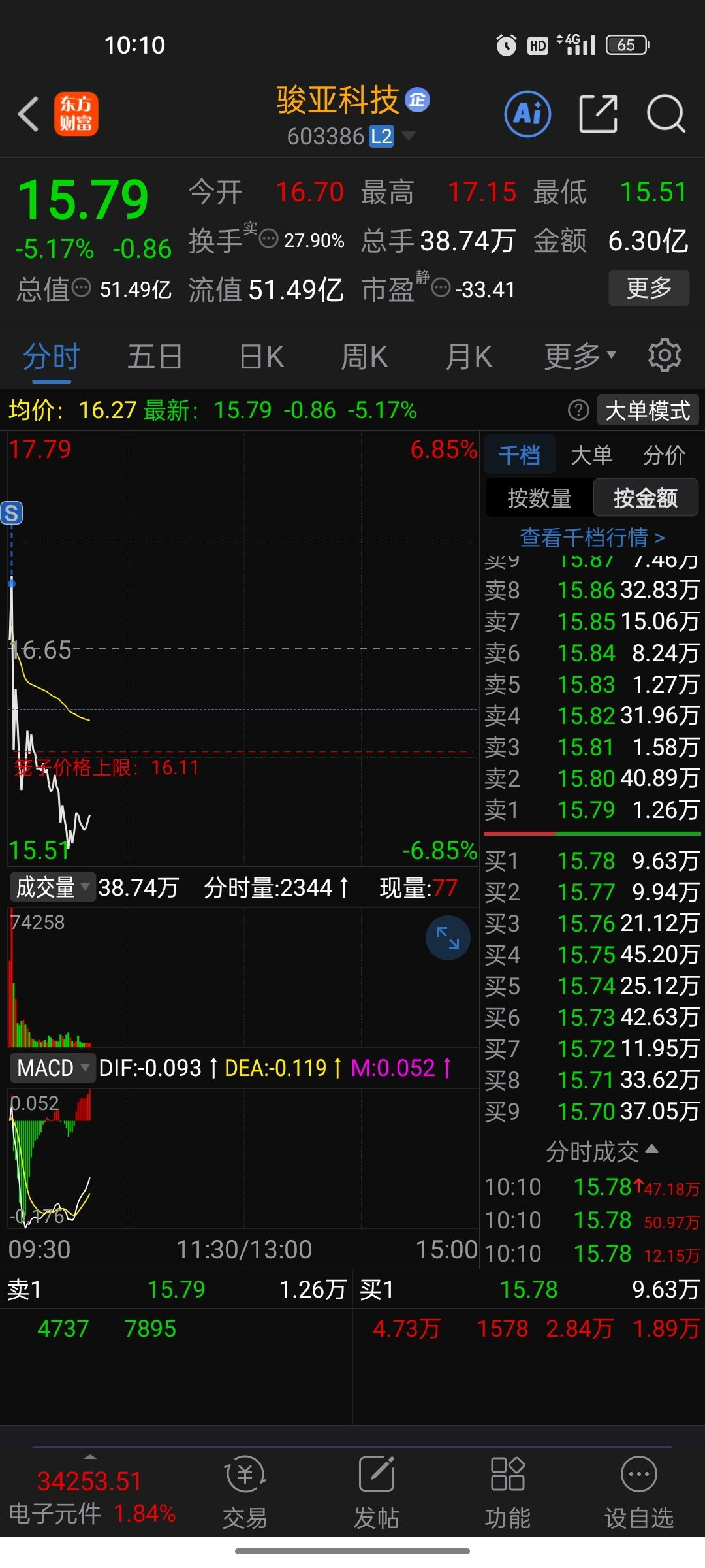 安记食品持仓没动骏亚科技不及预期冲高走了