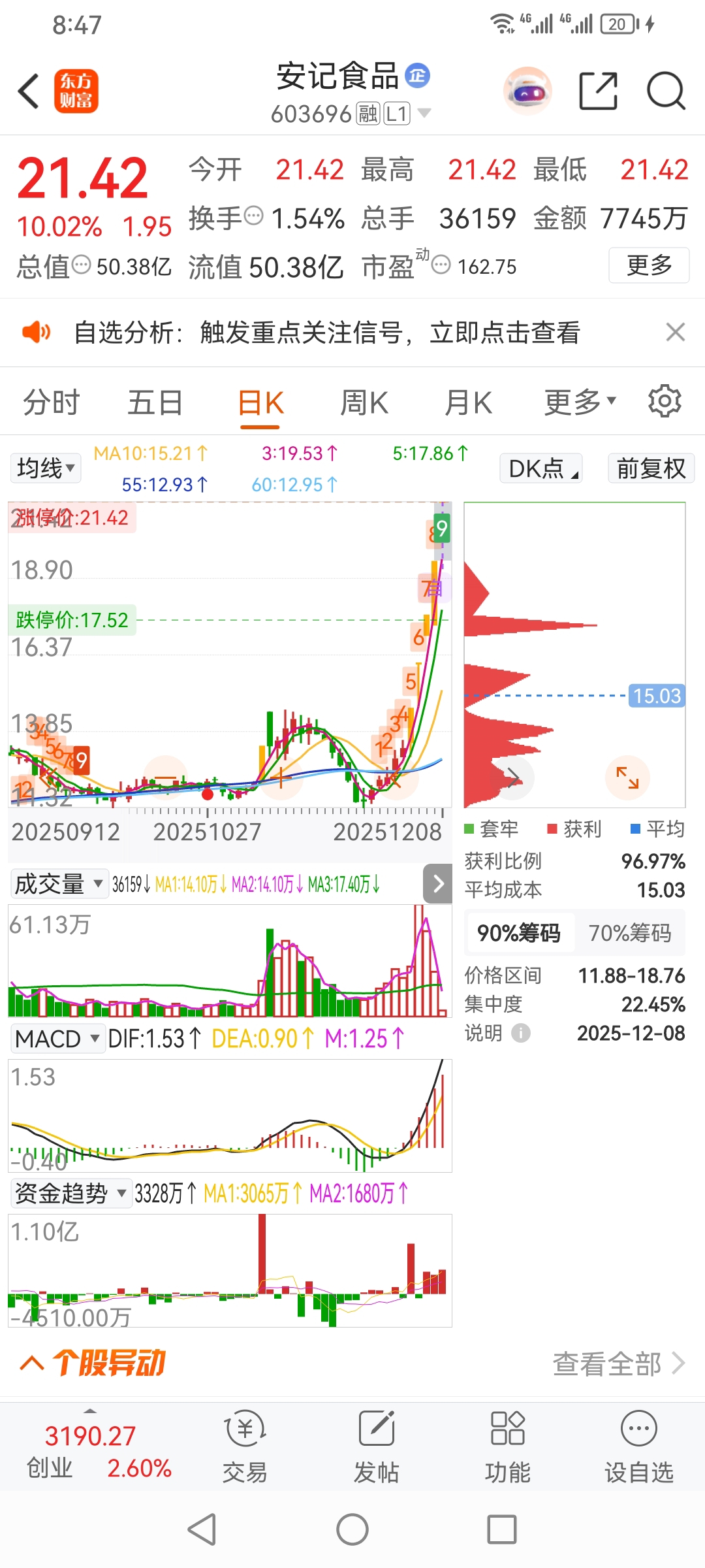 @妙想@炒股学军哥军哥,安记食品,今天涨停板,赚钱。...