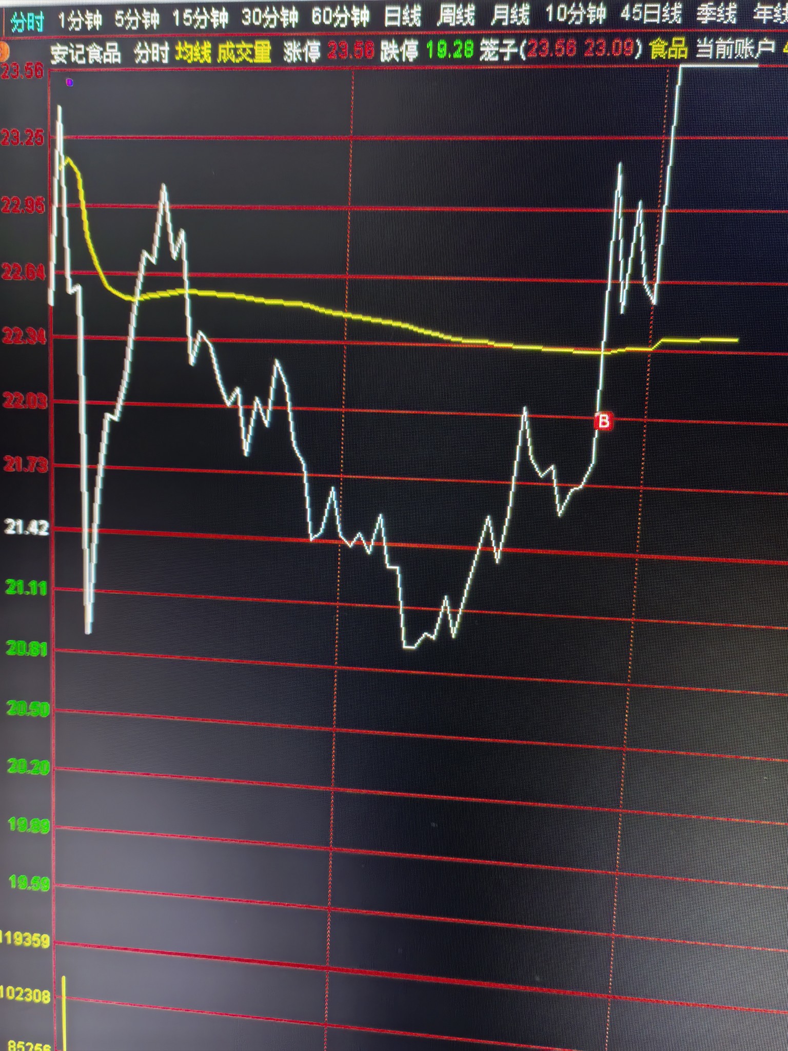 $安记食品(SH603696)$ 缩量一字板后爆量低吸点火战法:当高标一字加速后次日爆量充分换手承接再转攻势时,点火资金出现后且攻破前分时尖峰时可立即低吸买入博回封板!