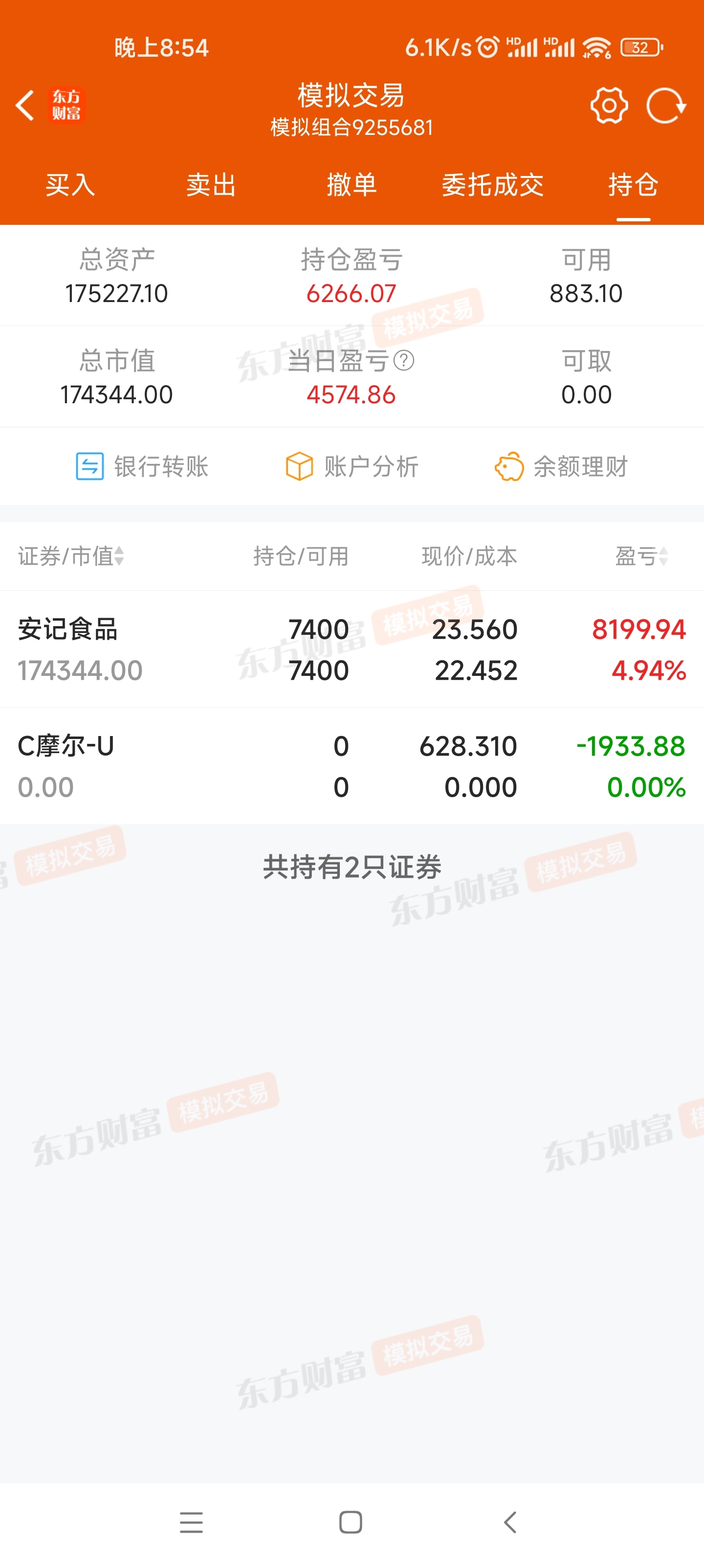 $安记食品(SH603696)$ 模拟盘一直可以盈利,实盘一直在亏……