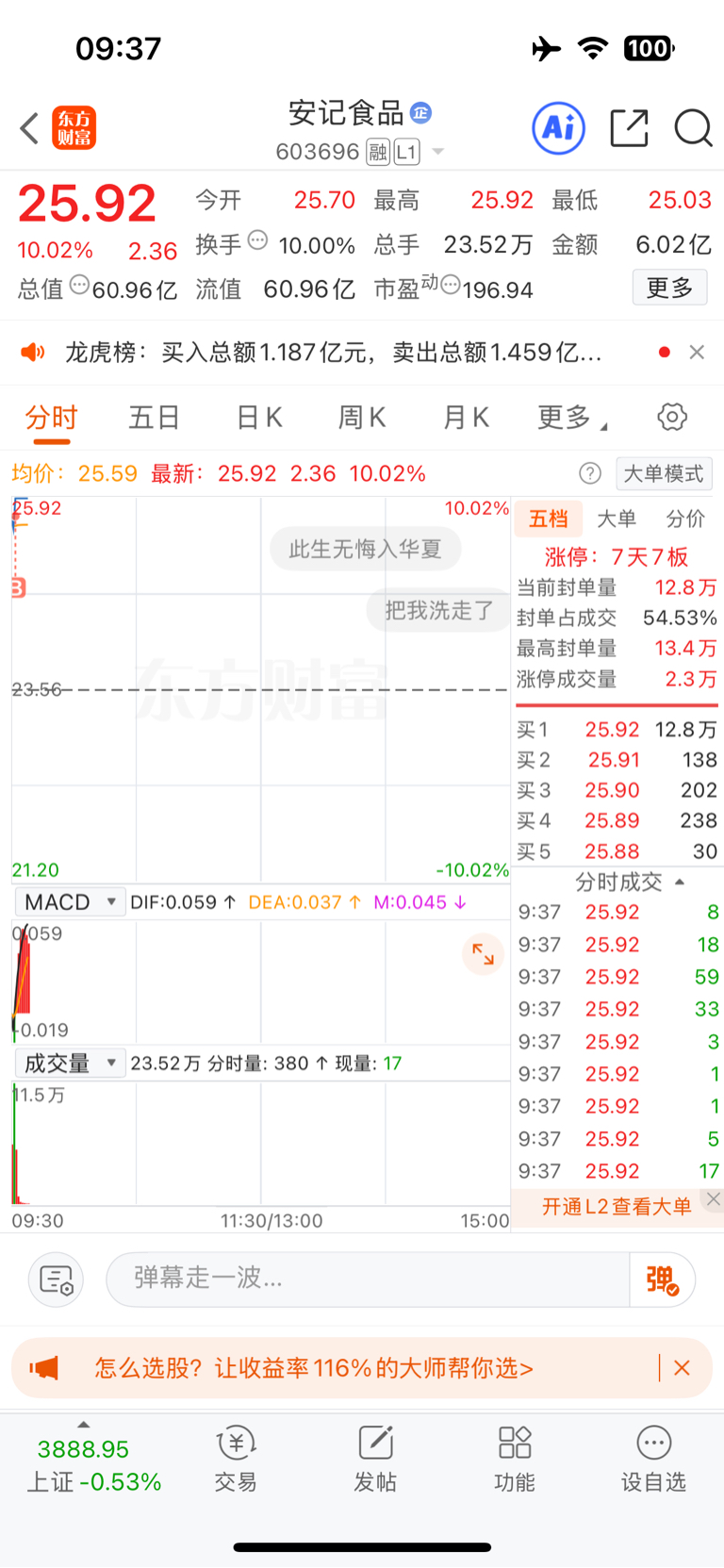 $安记食品(SH603696)$ 小仓位B了安记食品
