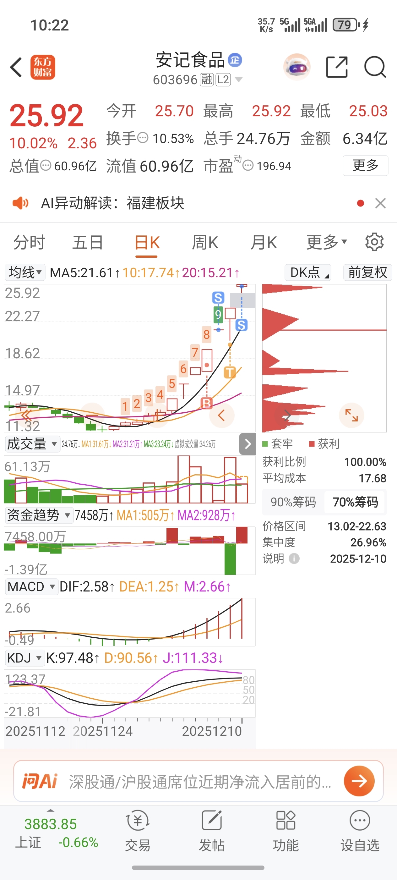 $安记食品(SH603696)$ 走了,食品板块高潮,下午不好说