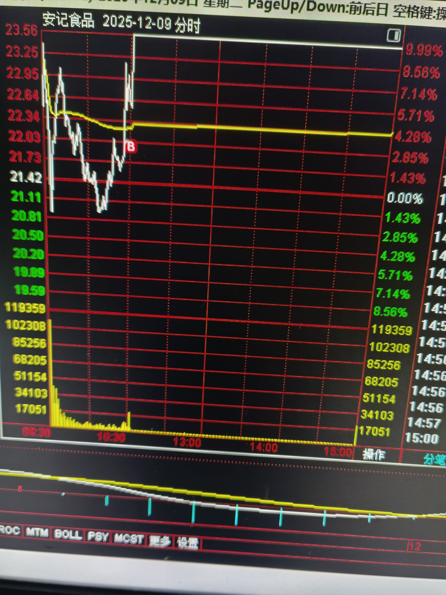 $安记食品(SH603696)$ 咋天低吸的今天弱转强秒板仍不出,昨天专门发贴介绍了龙哥的一字连板股后大分歧盘中点火低吸战法!明天仍涨停!