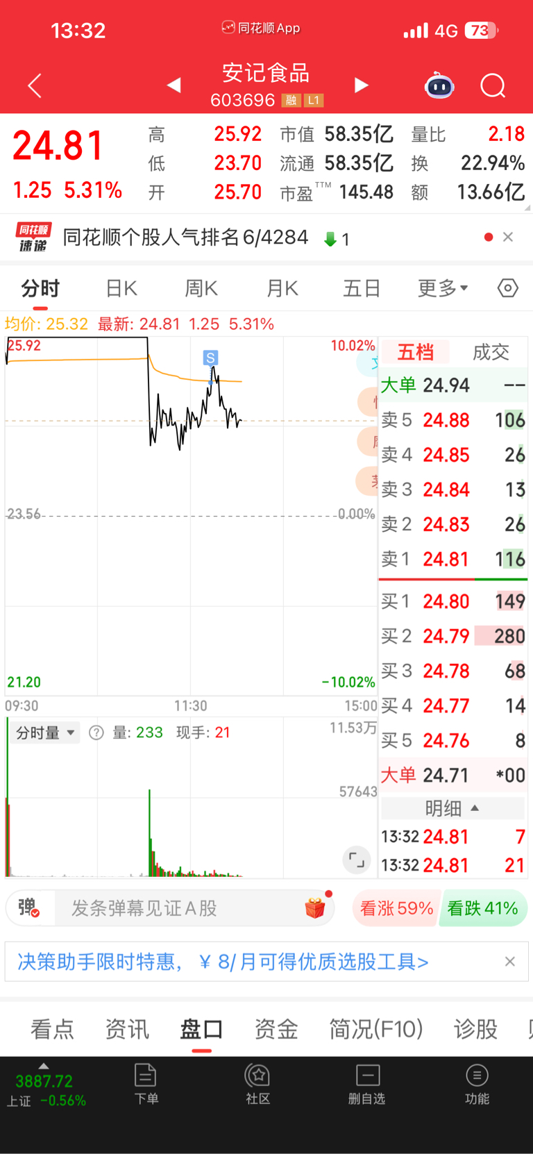 $安记食品(SH603696)$ 你还要挑战8板的勇气?