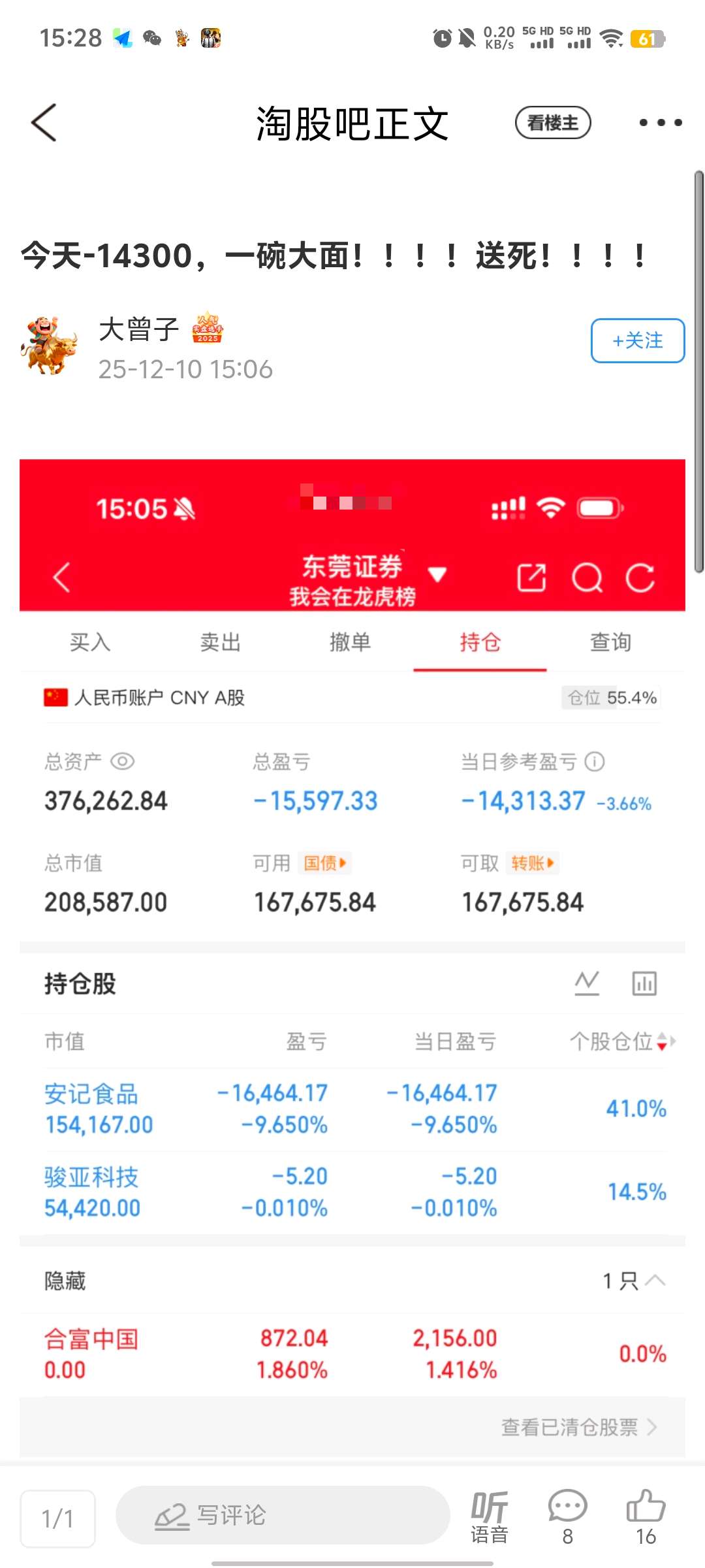 $安记食品(SH603696)$ 顶级游资大曾子,比肩陈小群,炒股养家,今天卖出$合富中国(SH603122)$ ,买入安记食品,买入$骏亚科技(SH603386)$