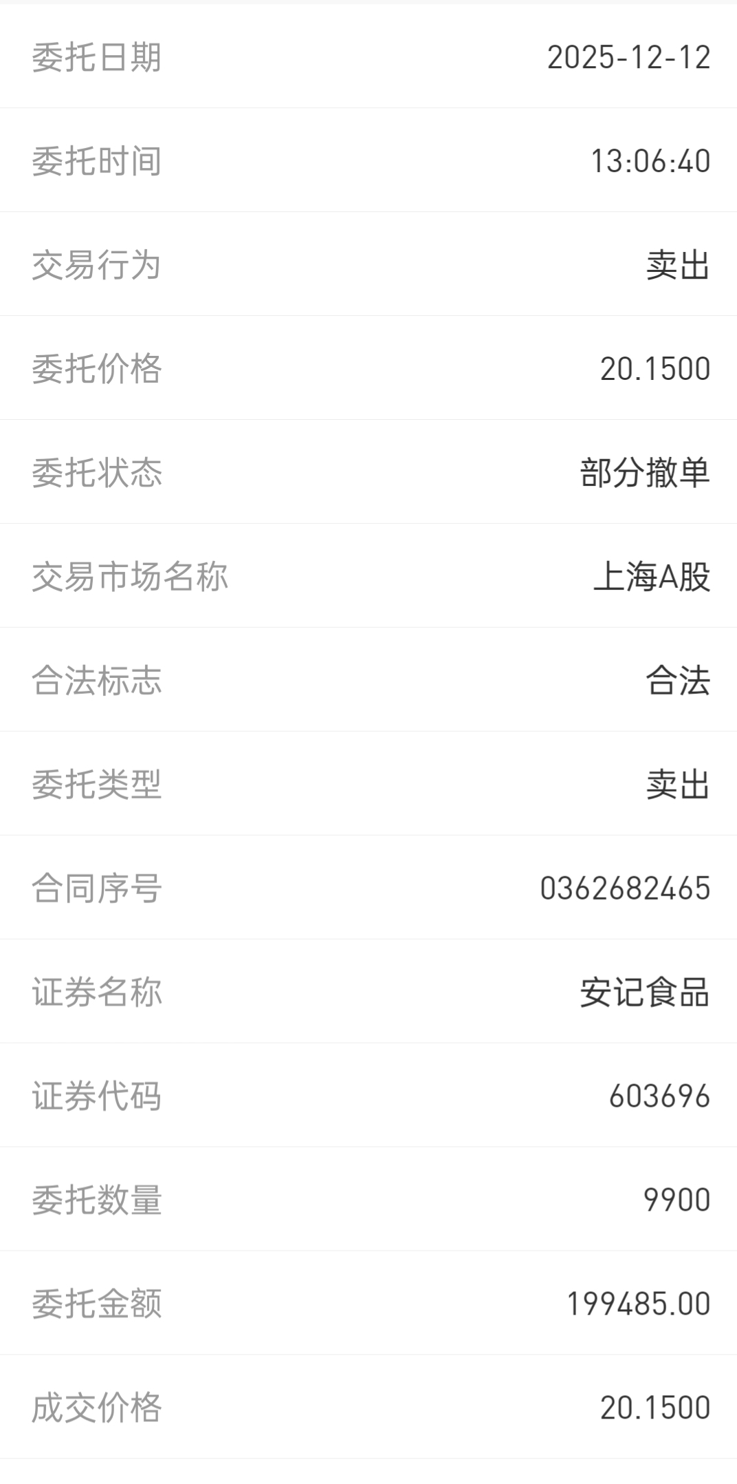 $安记食品(SH603696)$ 昨天买入,今天割了,纯属多杀多了,哈哈,对不住各位了。