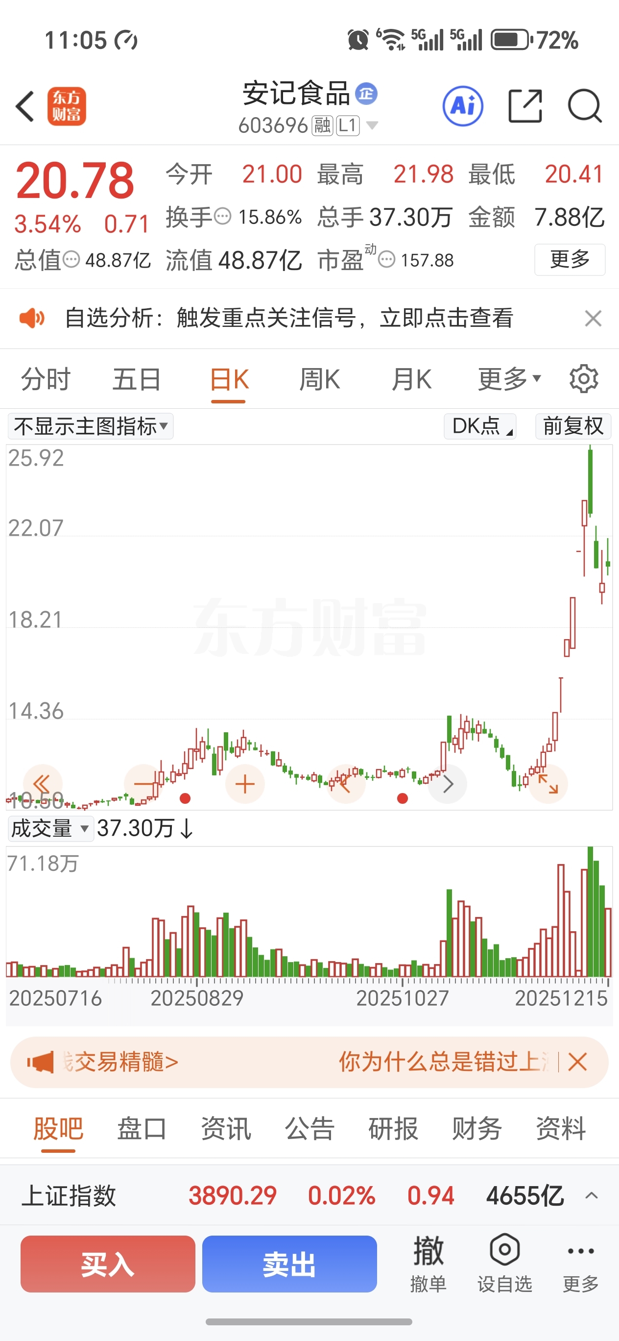 $安记食品(SH603696)$ 勾庄等韭菜接盘?