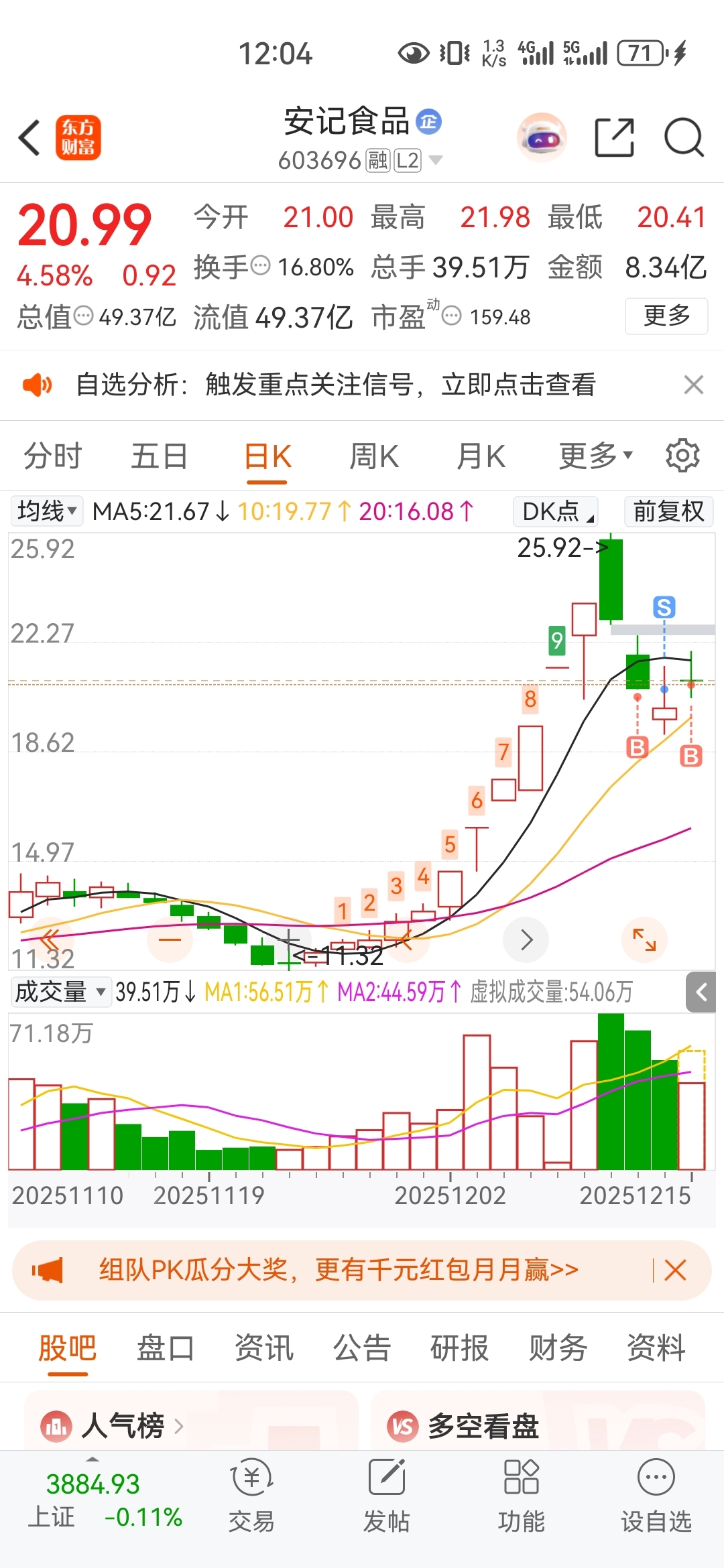 $安记食品(SH603696)$ 看笑了,亏钱的命