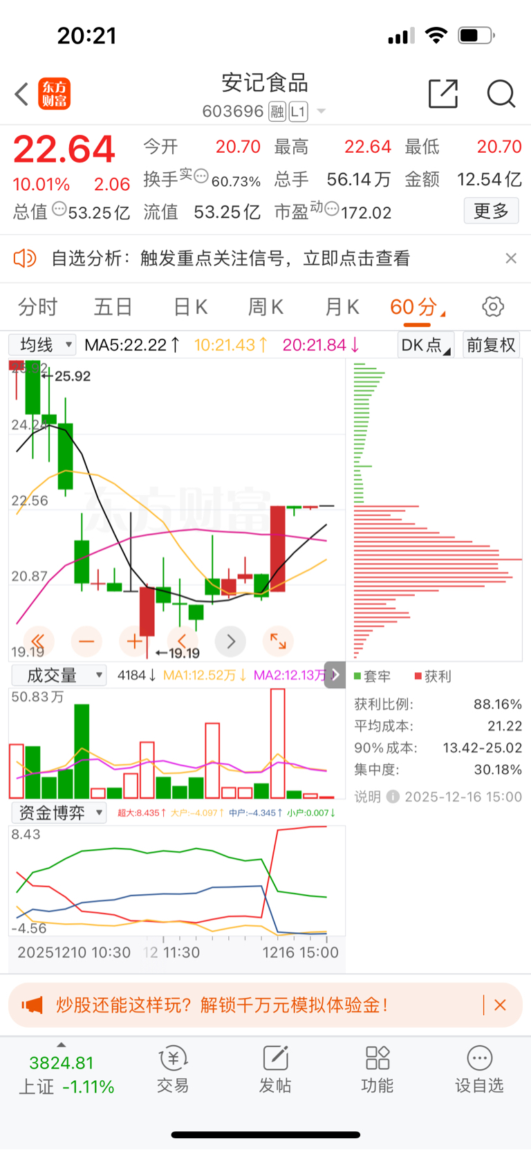 $安记食品(SH603696)$ 60分钟量能图,你告诉我分歧很大?有多大,有你眼珠子大么