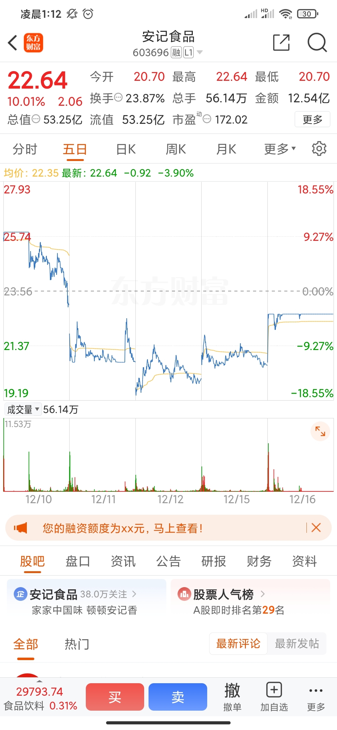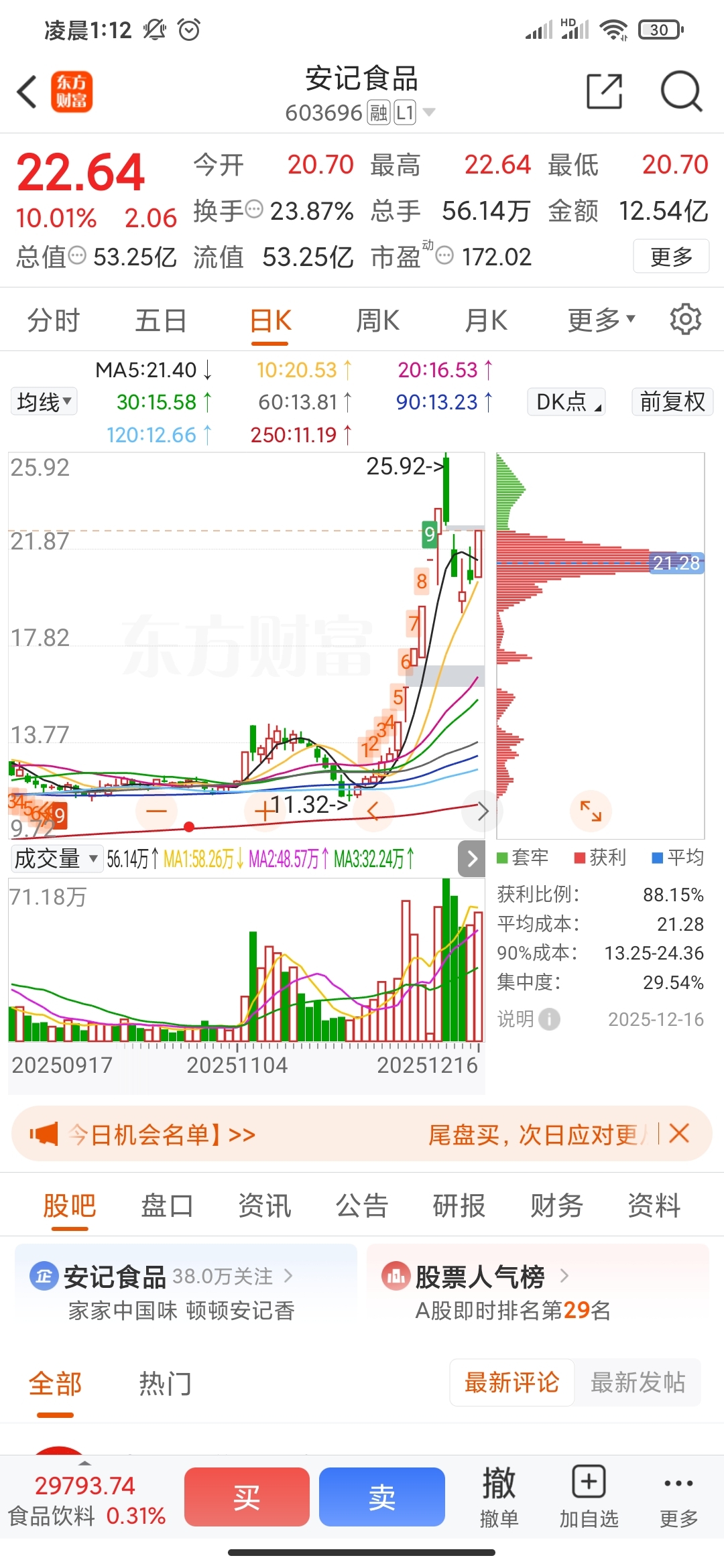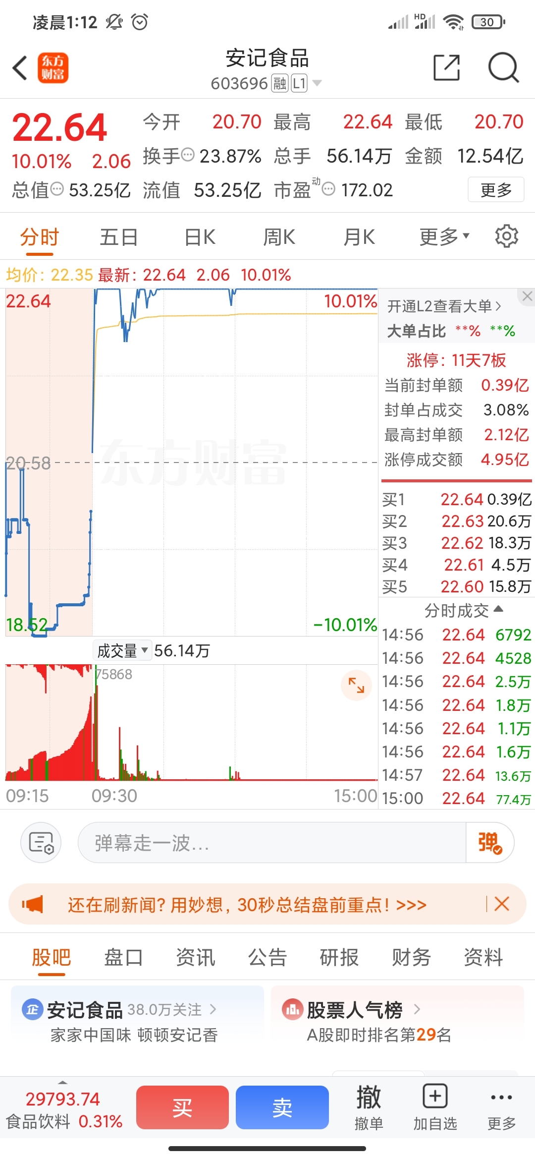 $安记食品(SH603696)$