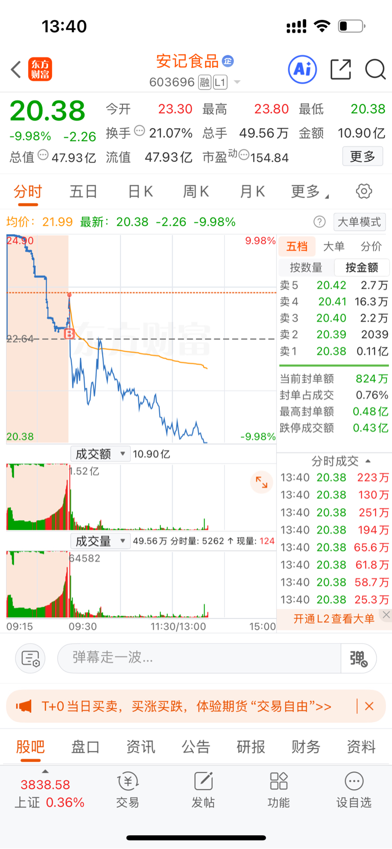 $安记食品(SH603696)$ 我这一手都亏了13个点,太难受了吧