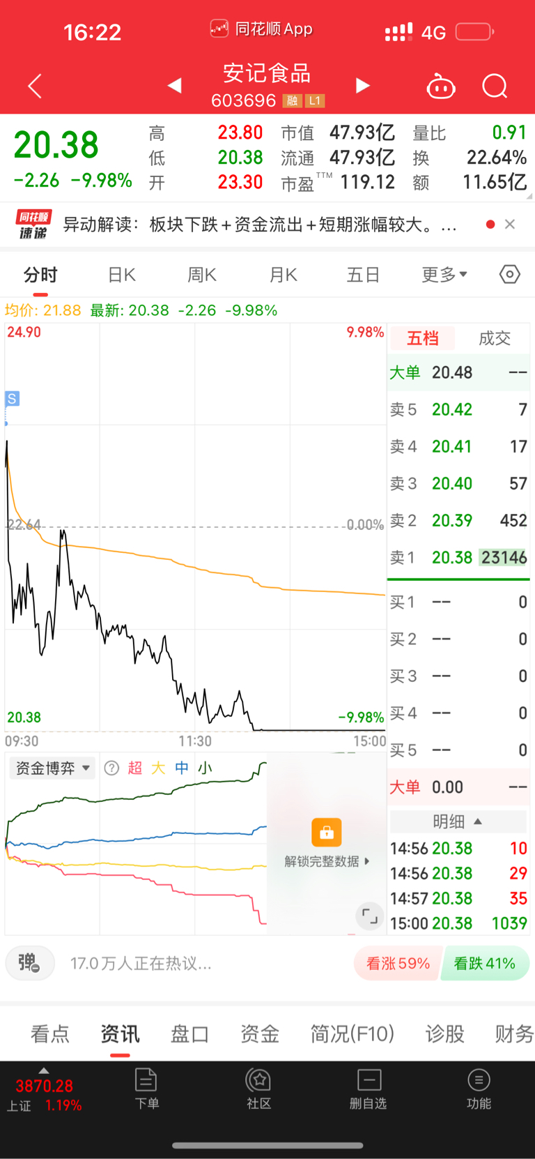 $安记食品(SH603696)$ 哪位韭菜,接了我的盘?