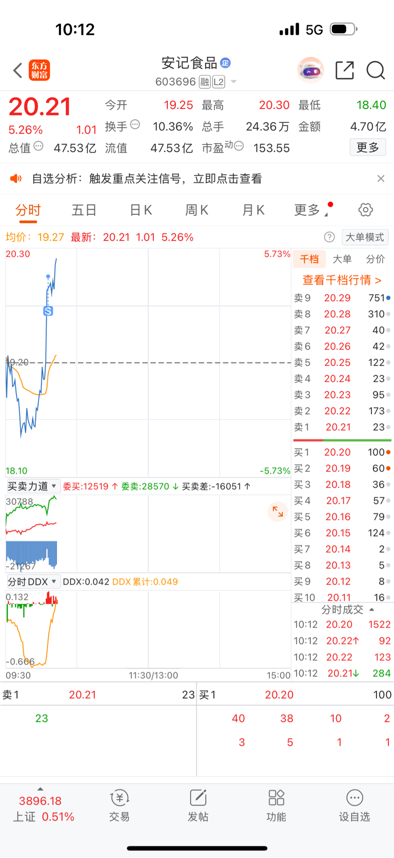 $安记食品(SH603696)$ 昨天跌停买的感谢主力