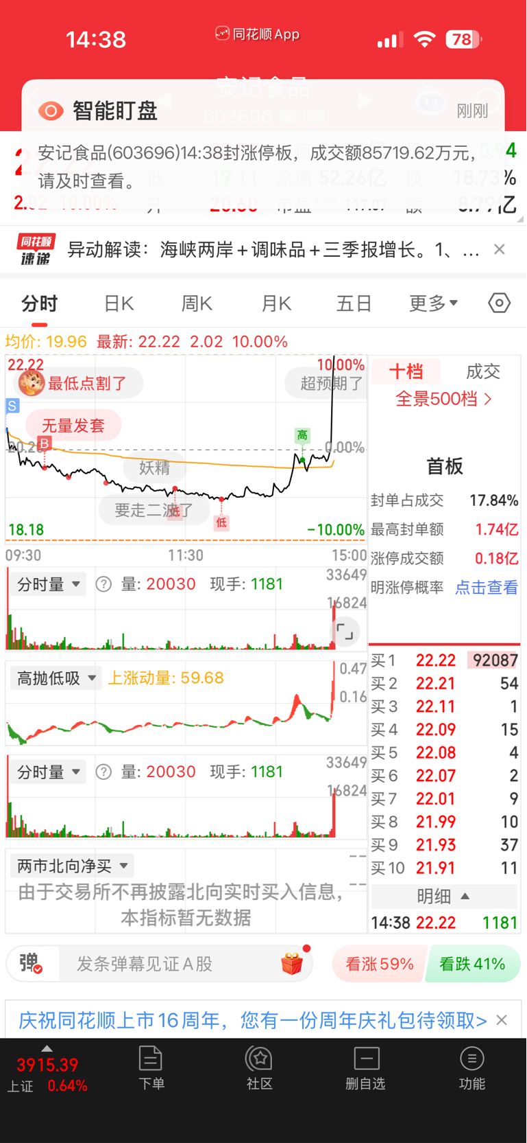 开盘拉高卖出,砸到水下-2开始加了四次,还等于加了一倍仓位,吃大肉肉了
