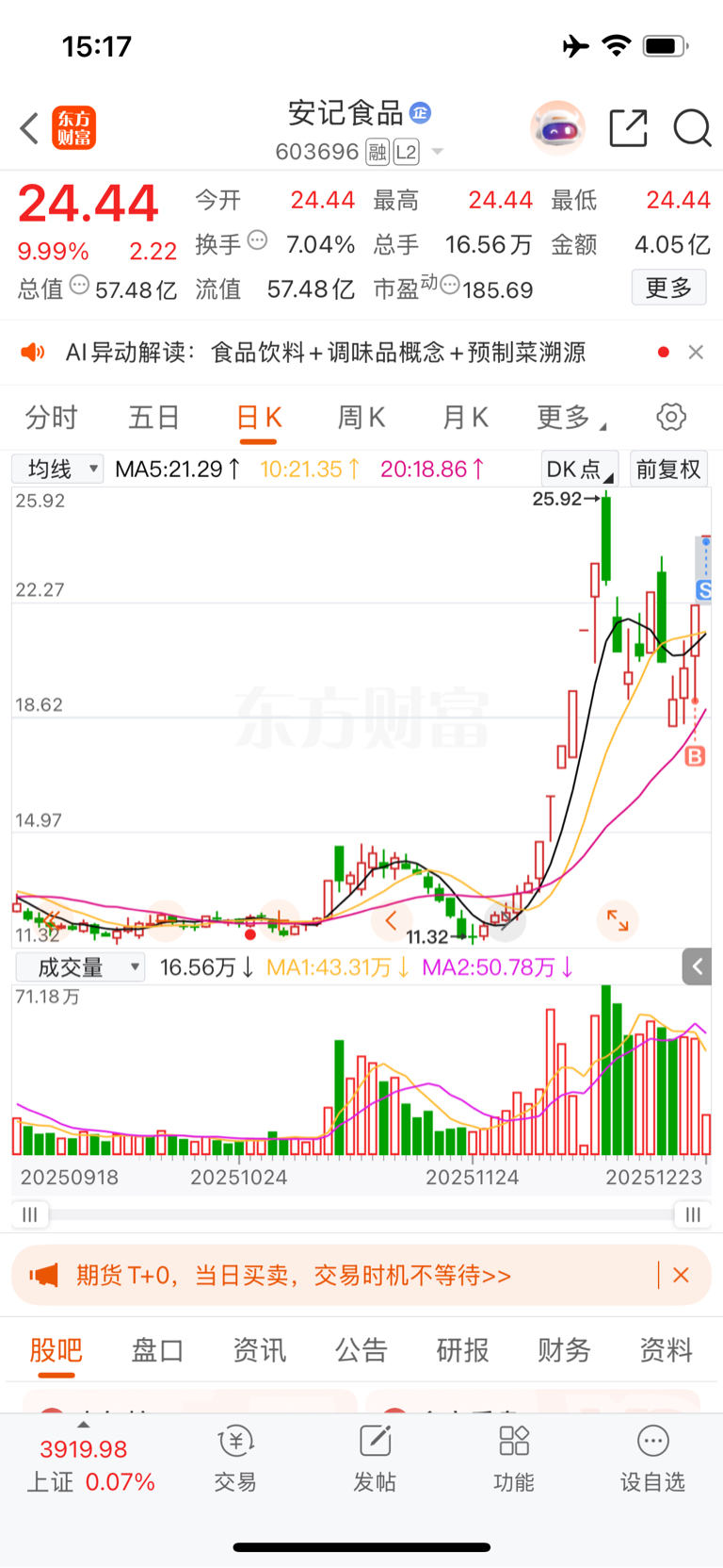 $安记食品(SH603696)$ 清仓了,留下的继续发财,明天继续板