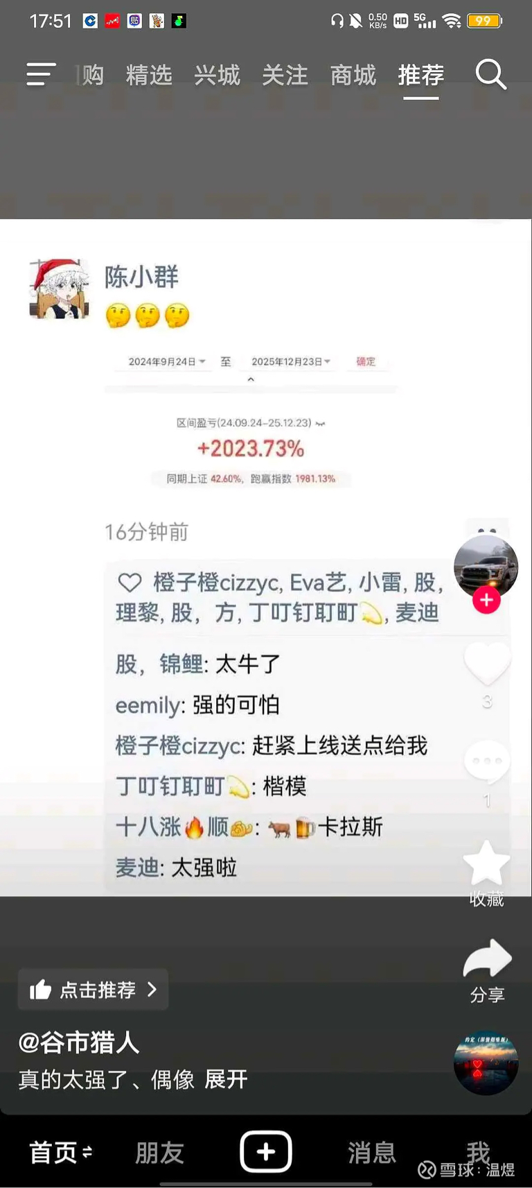 安记食品自由流通市值25亿,小群近2亿!绝对继续格局,散户们联合起来,还怕什么?!今天最好换个手!迎来周末馆长带货数据的热潮!就好比上周的海南催生发展!