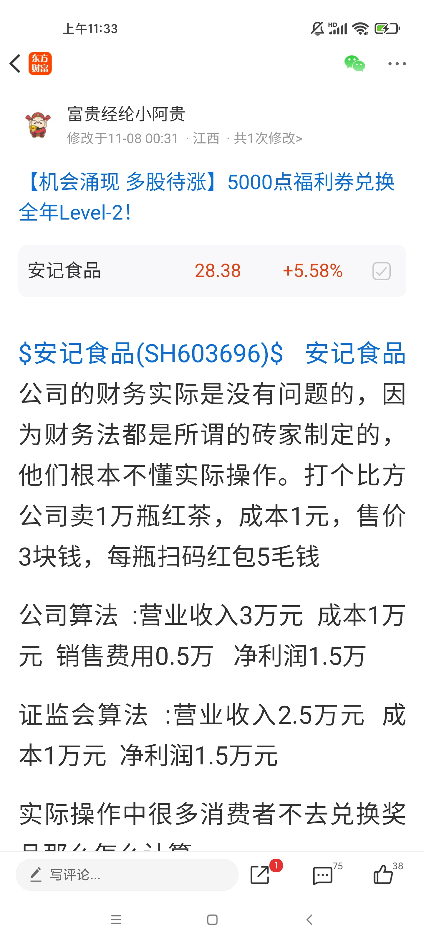 $安记食品(SH603696)$ 11月份我每天都是呼吁可以买入,而且提前分析了就是主力配合公司发布利空吓唬散户为了拿低价筹码还特意说了这帮人就是坏和现在曲江文旅为了拿筹码一个手法,现在高位我是呼吁卖,主力反而又在29的位置天天让人吹跨年妖,10块不买29买?我就看不惯主力这种政策行为,如果按正常手法他们根本没能力割韭菜