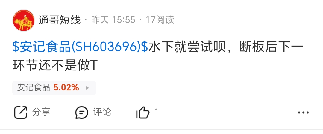 $安记食品(SH603696)$ 跟着通哥的节奏