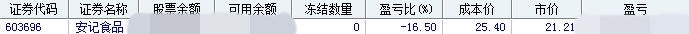 $安记食品(SH603696)$ 安记食品,今日跌停,持股中。
