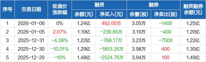 安记食品:融资净买入492万元,融资余额1.24亿元(01-06)