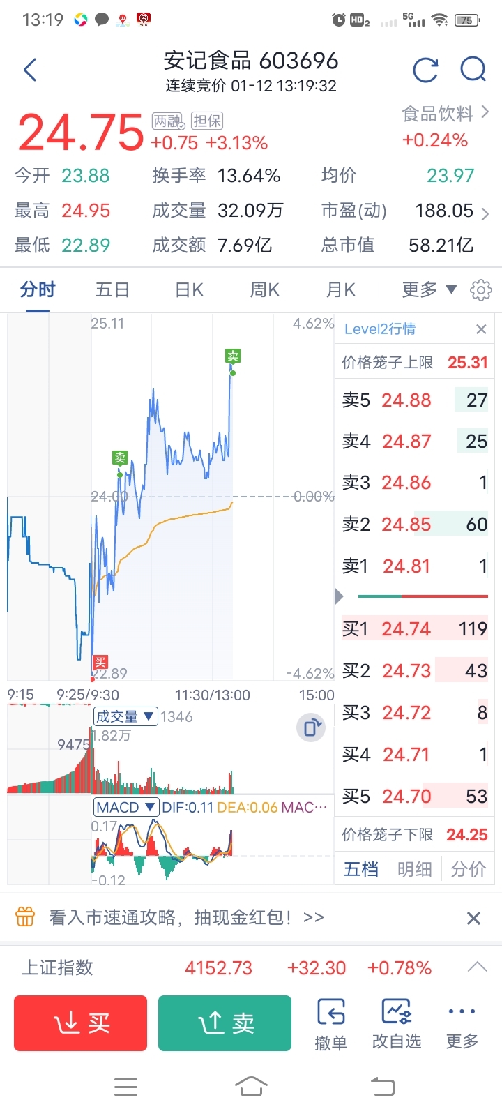 $安记食品(SH603696)$ 继续减仓,降低成本