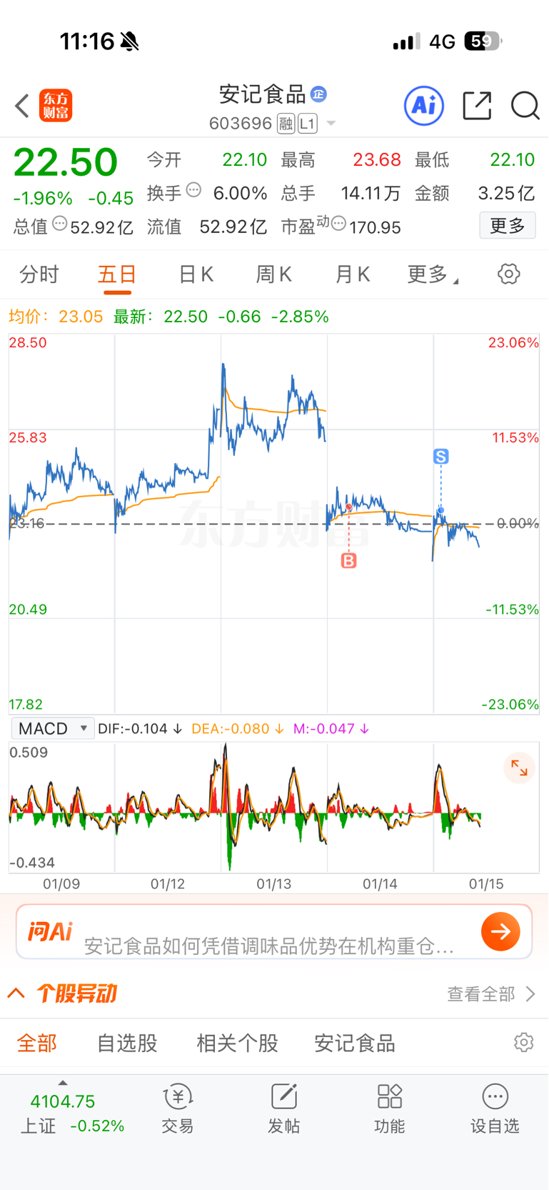 $安记食品(SH603696)$ 亏三千到亏三百,今天是赚钱的
