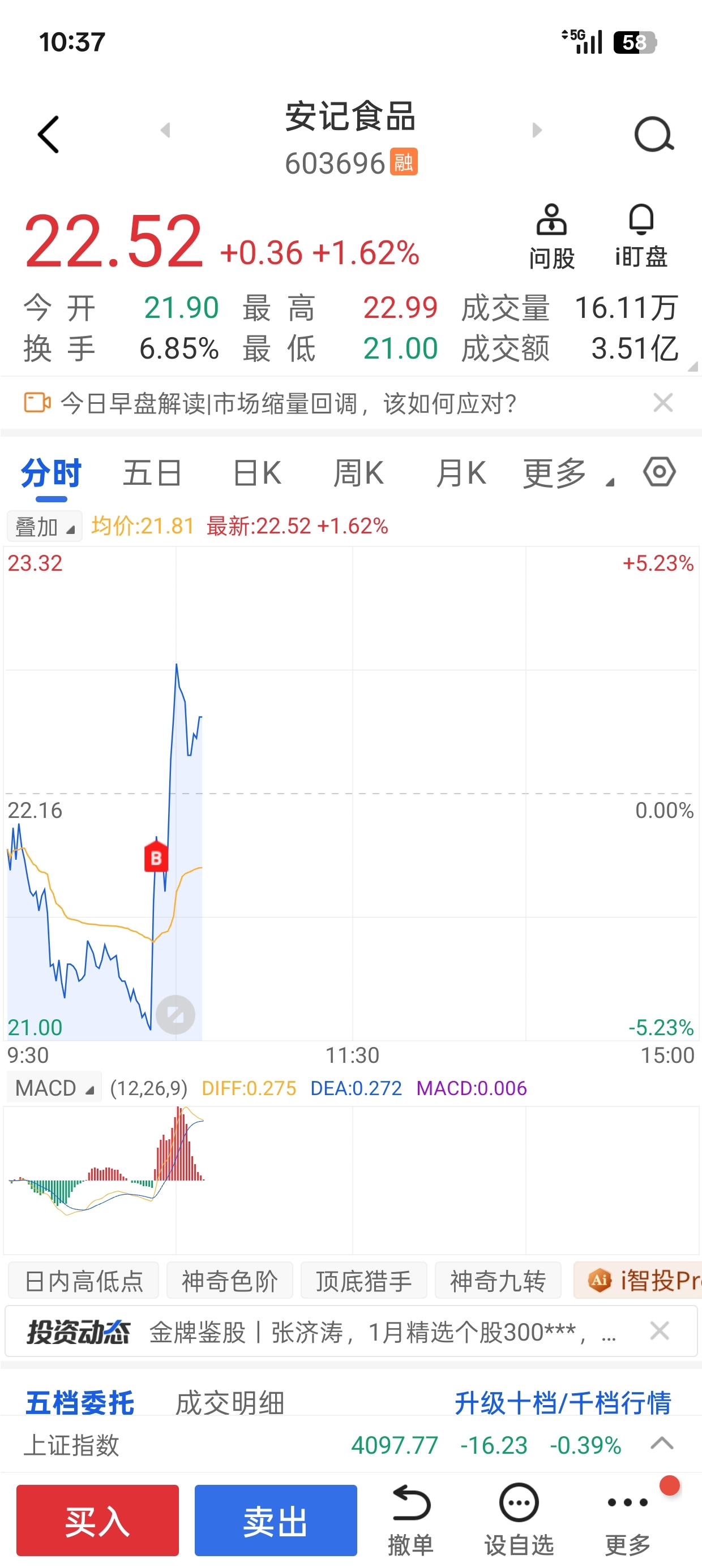 $安记食品(SH603696)$ 今天狗主力带血筹码捡爽了,就慢10秒钟成本给我拉高6毛钱真的服气,看到永辉超市大单来了这边挂单就来不及了